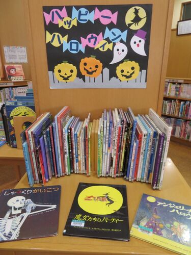 「ハッピーハロウィン」(児童コーナー) 今年もハロウィンがやってきます! 魔女や魔法、お菓子や仮装の本で おうちハロウィンを楽しみましょう☆ トリックオアトリート!(*^∇^)ノ゚・*:.。. ☆ものがたりよこにも「魔女と魔法の本」を出しています。